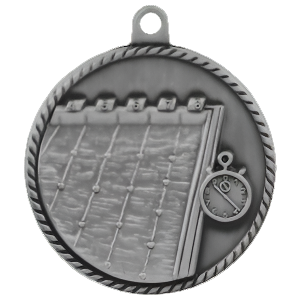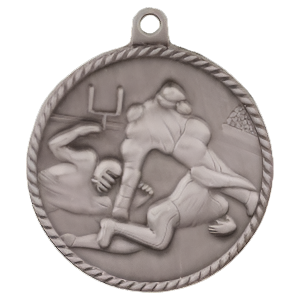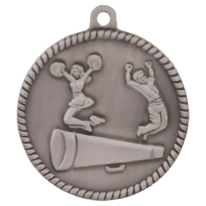 2" High Relief Second Place Antique Silver Medal with Neck Ribbon