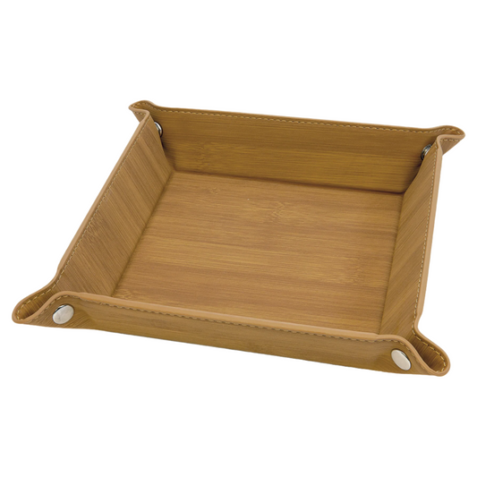 6" x 6" Bamboo Leatherette Snap Up Tray with Silver Snaps