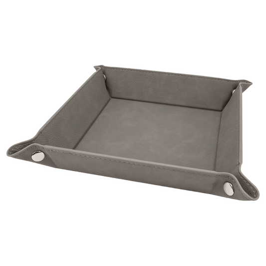 6" x 6" Gray Leatherette Snap Up Tray with Silver Snaps