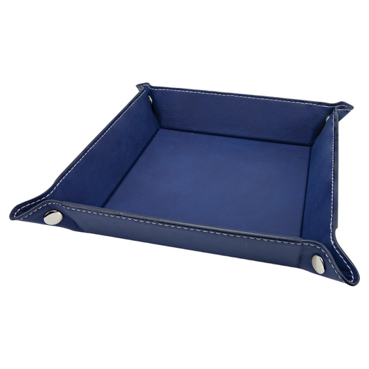 6" x 6" Blue/Silver Leatherette Snap Up Tray with Silver Snaps