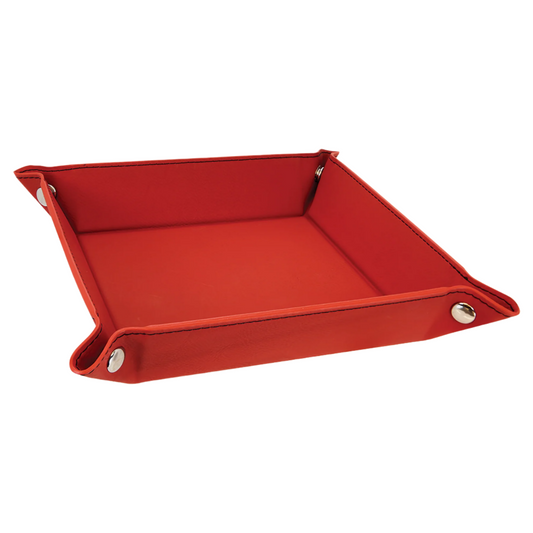 6" x 6" Red Leatherette Snap Up Tray with Silver Snaps