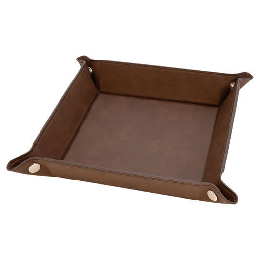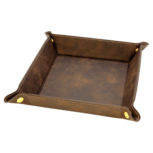 6" x 6" Rawhide Leatherette Snap Up Tray with Silver Snaps