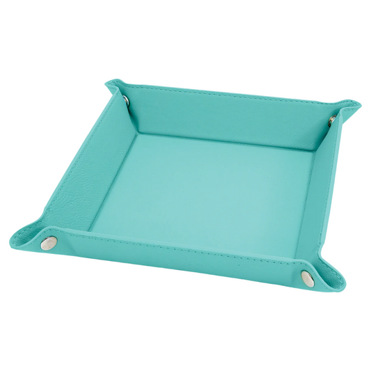 6" x 6" Teal Leatherette Snap Up Tray with Silver Snaps
