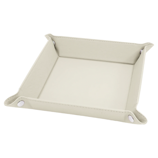 6" x 6" White Leatherette Snap Up Tray with Silver Snaps